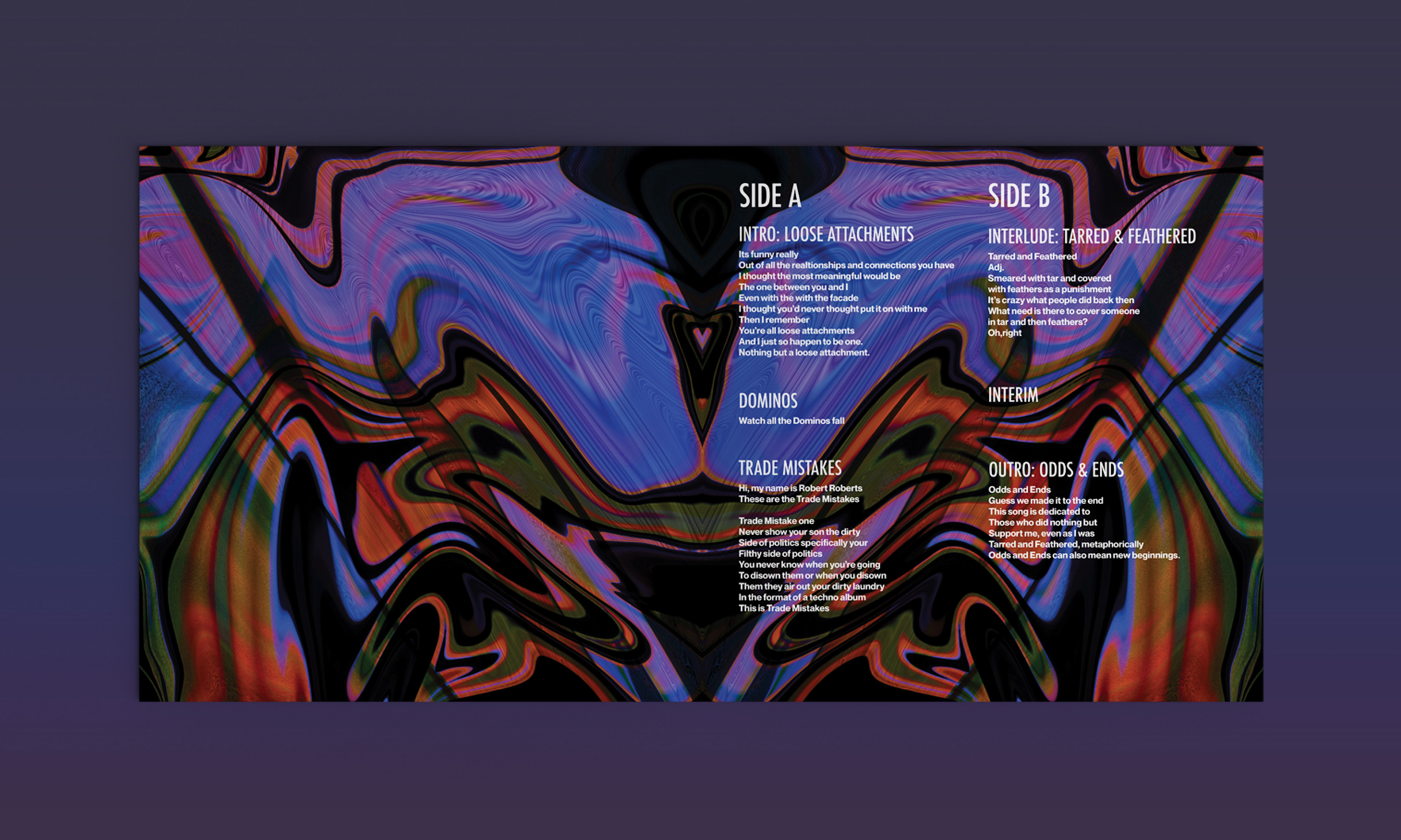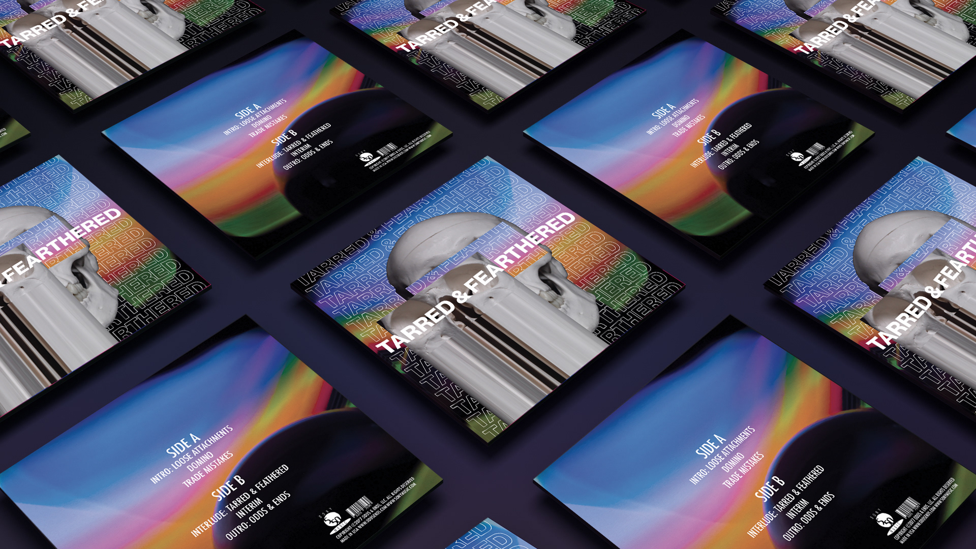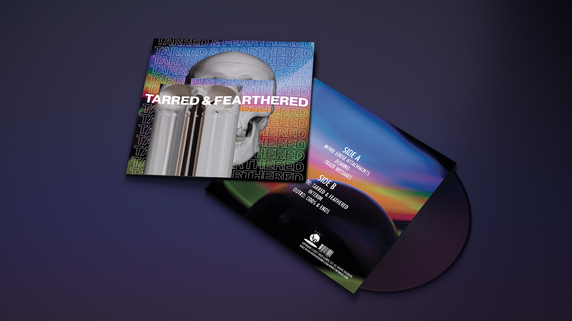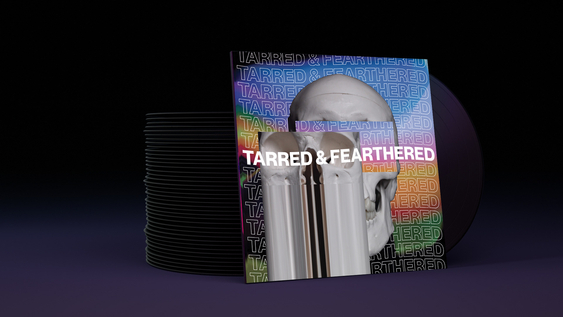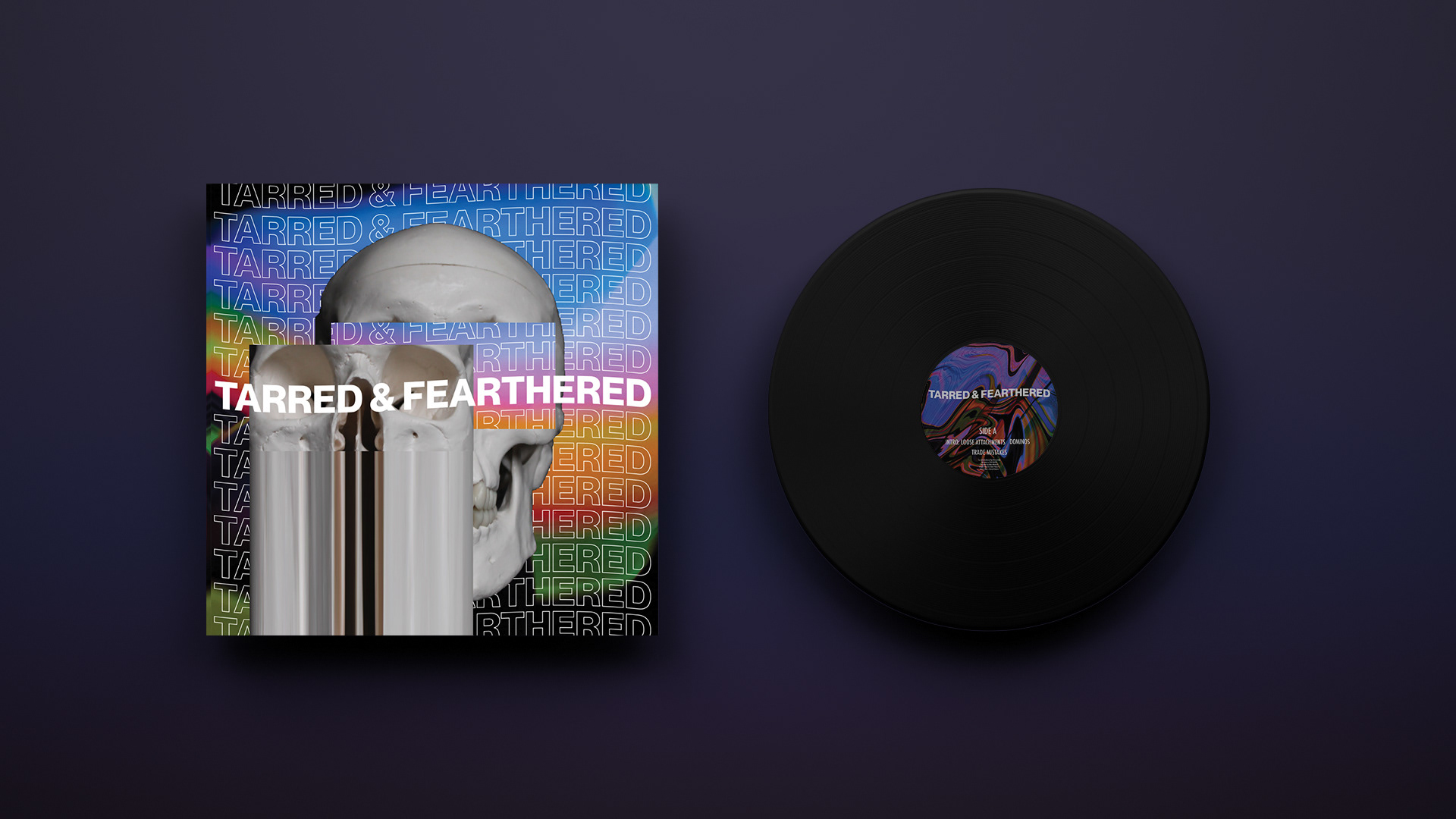 Welcome to the electrifying world of Odds & Ends! We now introduce Tarred and Fearthered! With bold colors, image manipulation, and striking text is meant to immerse you in the pulsating energy of this techno-rock masterpiece!