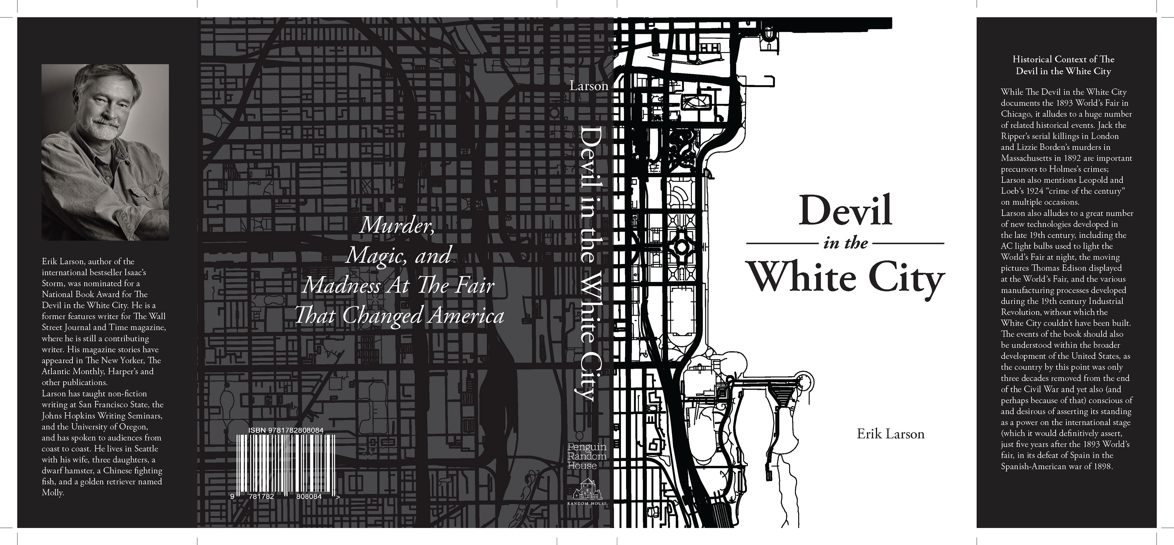 By using the map of Chicago, at the time the book takes place, highlights the locations that were mentioned throughout the book. The lack of color is to follow the historical accuracy of prints at the time.