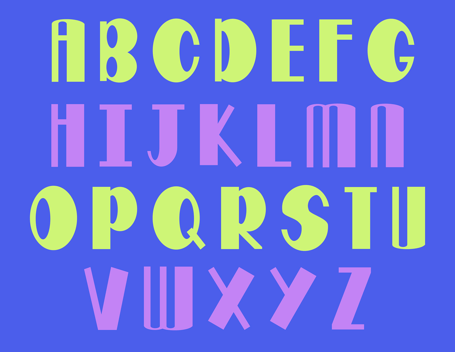 Hoba is an all-caps display typeface created based on a grid system, only using rectangles and ovals to create each letter form. The best way to describe this typeface is fresh, cool, chunky, and fun!